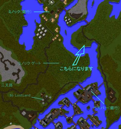 ゲートからでしたら、東に向かってベスパーを抜けた方が便利かも知れません。 ベスパー、ミノック北周り間は町のガード領域に挟まれているので、比較的安全です。